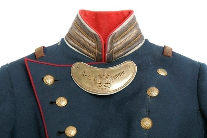 На самом деле, горжет носили даже в армии. Ввёл элемент амуниции Петр I, подсмотрев его у европейцев. Горжет имел форму полумесяца с государственным гербом по центру. Нагрудный знак помещали под воротник, закрепив его шнурками к эполетам и пуговицам.