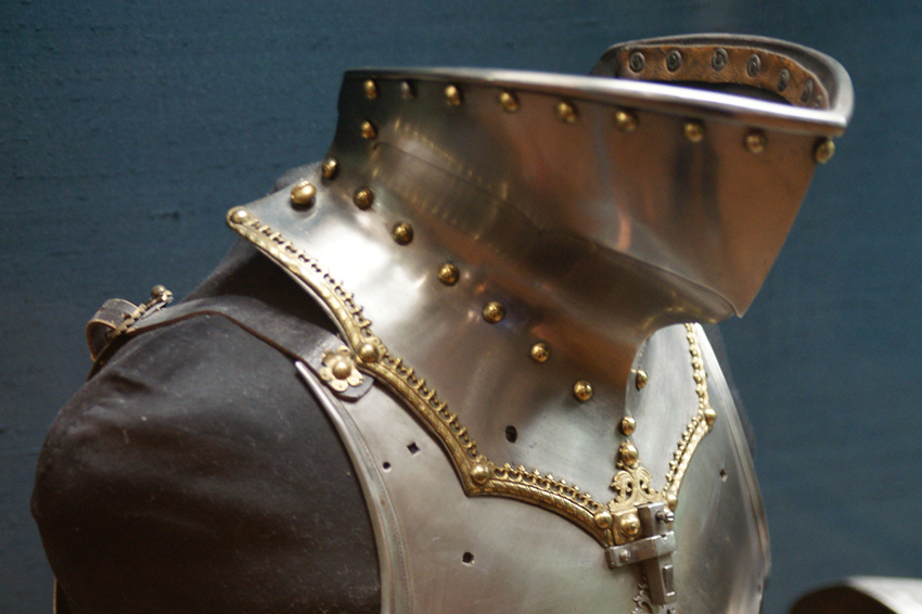 Речь идёт о горжете. В Средние века под горжетом подразумевали часть рыцарского доспеха — металлический воротник защищавший ярёмную впадину и горло воина. С развитием огнестрельного оружия, доспехи ушли в прошлое, а горжет превратился в символ рыцарского благородства.