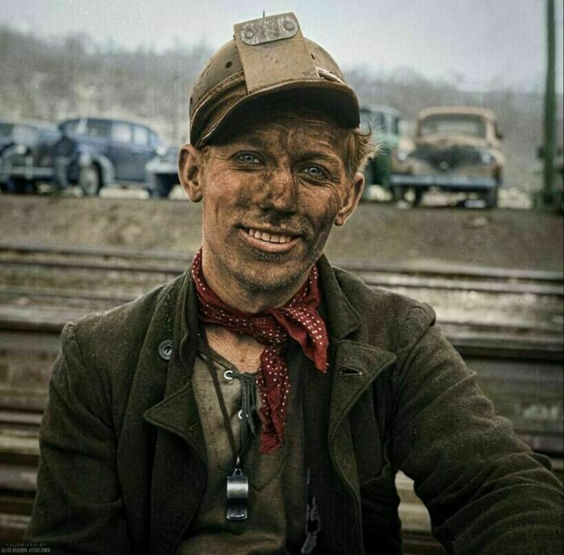 Улыбающийся фотографу шахтер после окончания трудового дня