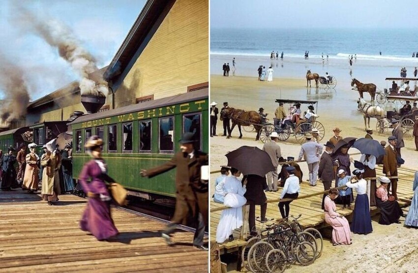 Как можно заметить, тогда многие девушки и женщины приходили на пляж не в бикини, а в платьях, а мужчины — в строгих костюмах. Кто-то просто дышал океанским воздухом, кто-то любовался прекрасными видами, и лишь немногие отдыхающие заходили в воду.
