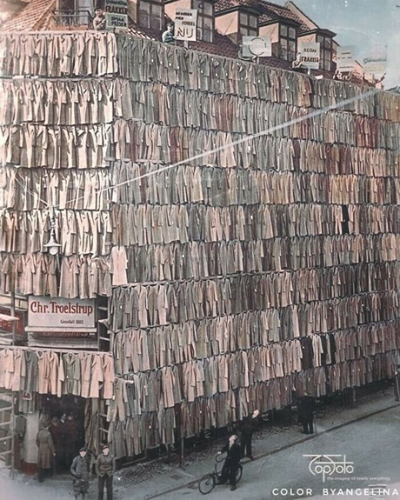 Вот так продавали зимние и весенние пальто в копенгагенском магазине в 1936 году, когда он был переполнен вещами
