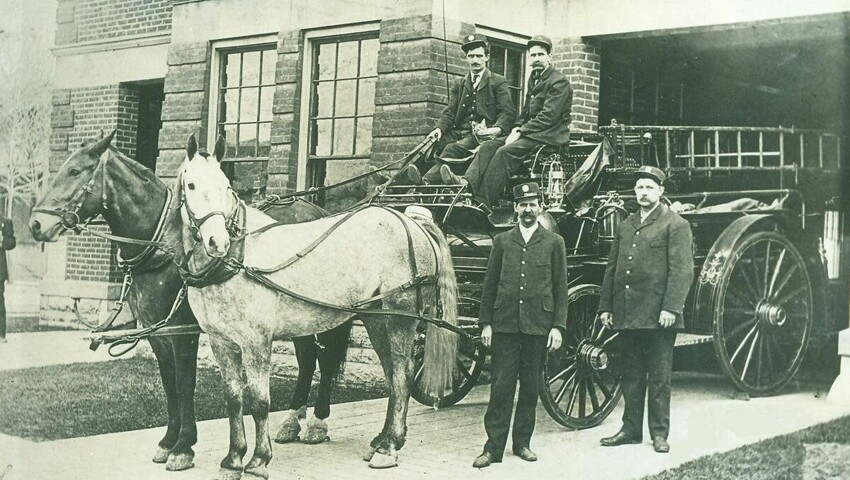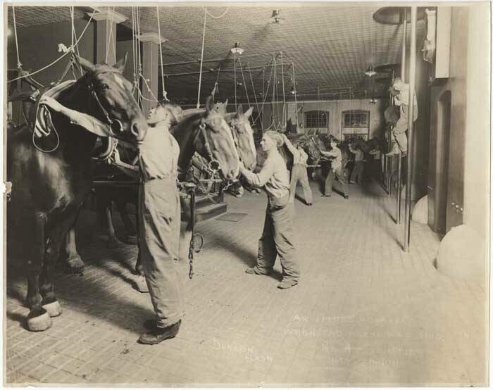 И именно поэтому старые пожарные депо строились двухэтажными или трехэтажными. Лошади стояли в стойлах на первом этаже рядом с водоносными повозками, а пожарные работали, обедали/ужинали и спали уровнем выше.