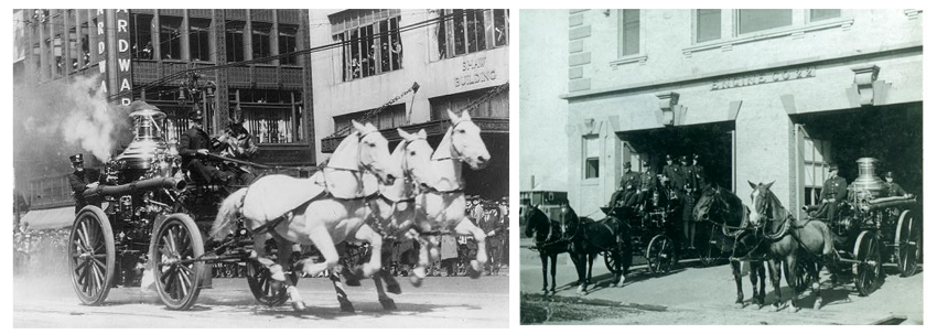 В настоящее время для этого существуют специализированные пожарные машины, но если мы вернёмся на 100-150 лет назад, то ни о каких специализированных машинах и речи не шло — автомобилей либо ещё не существовало, либо они были слишком новыми, дорогими и неприспособленными для городов изобретениями.