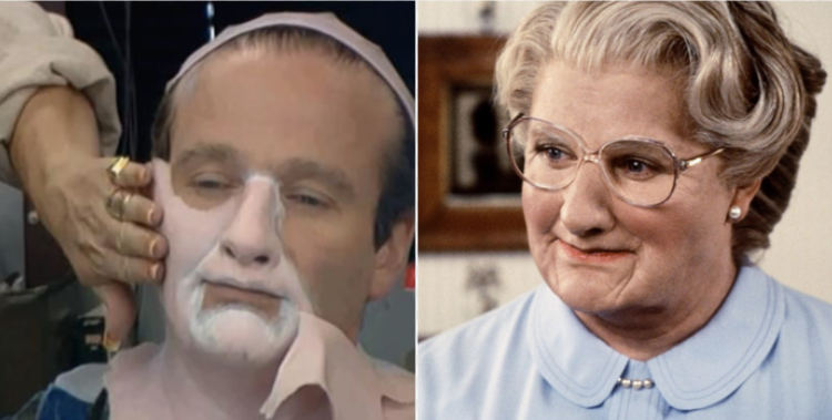 Ну а начать мне хотелось бы с классного фильма "Миссис Даутфайр", о съемках которого я как раз недавно рассказывал в одной из своих предыдущих статей. Главную роль здесь исполнил несравненный Робин Уильямс, которому по сюжету приходилось перевоплощаться в милую старушку, чтобы быть поближе к своим детям, ведь после развода с женой его общение с детьми стало весьма ограниченным.