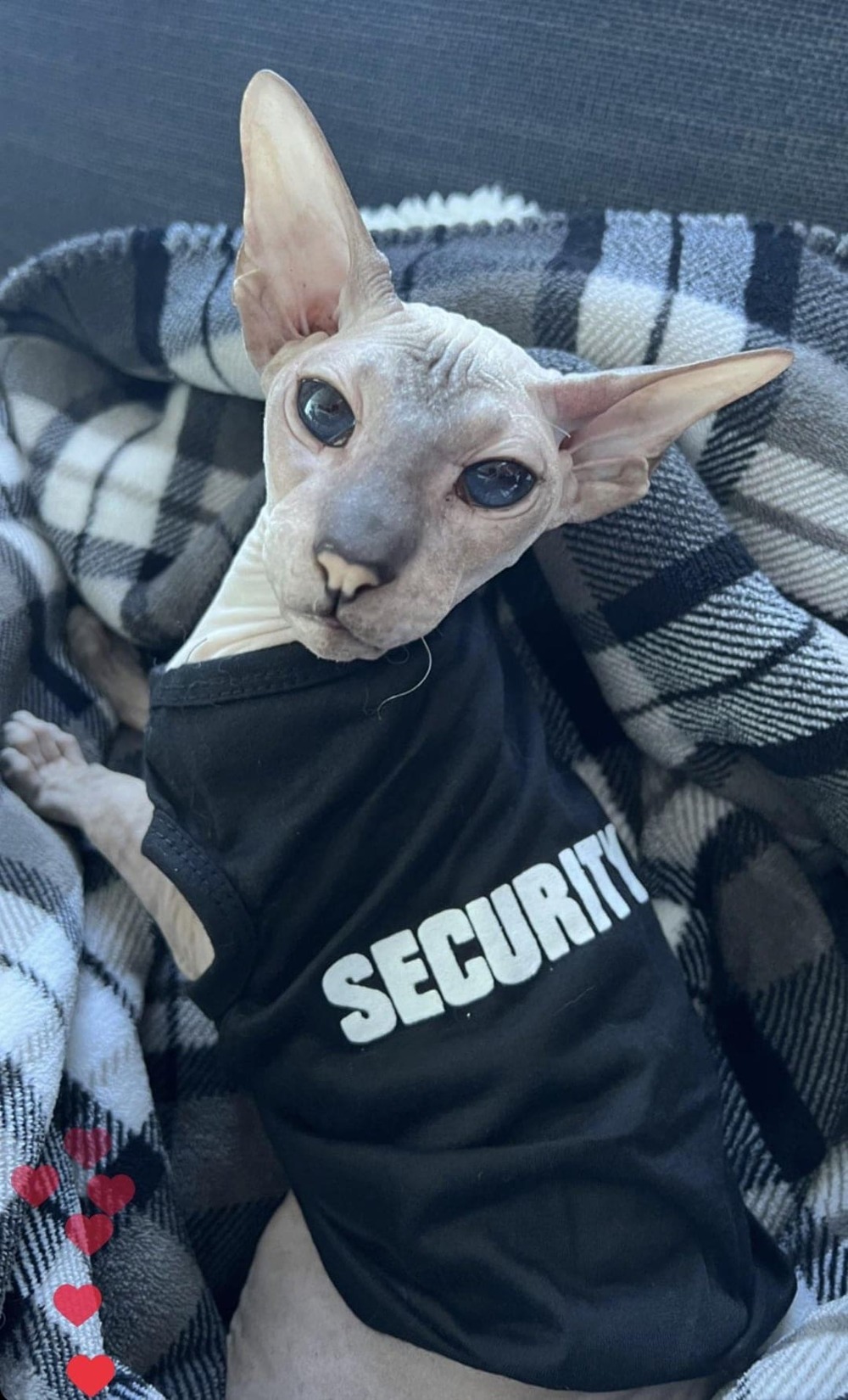 Почётное серебро забирает себе порода питерболд. Эти кошки славятся своими большими заострёнными ушами и треугольной мордой, которые придают им весьма эффектный и нетипичный вид.