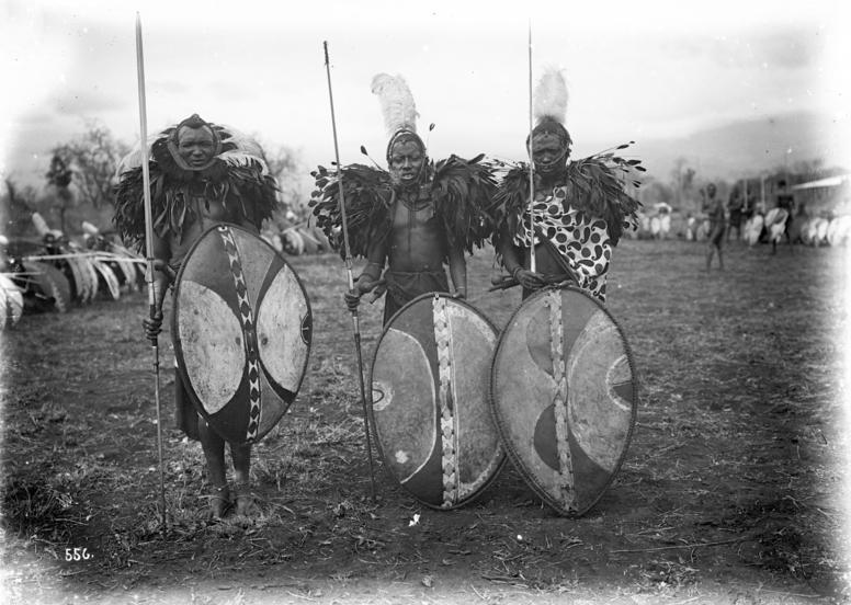 Масайские юноши (иль-мурраны) выходят на поединок против гиены. Фото столетней давности