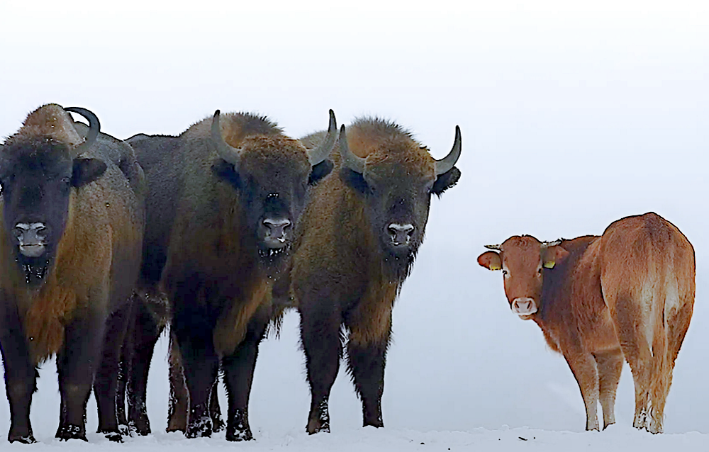 В польской деревеньке Скупово произошло небывалое – корова покинула загон через дырку в заборе и нашла себе новую семью. Убежала она не в поле, а в стадо больших зубров. Возвращаться в былую хату она явно не планирует. А хозяин животного не решился пойти в гости к зубрам за своим имуществом, ибо не стал испытывать судьбу и их гнев.