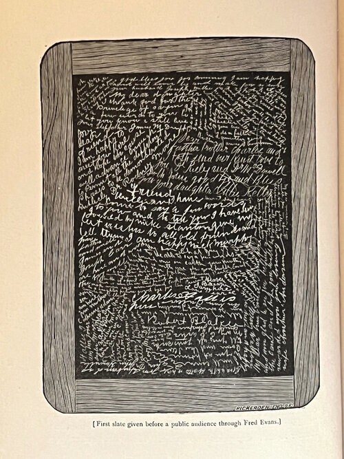 Иногда на листах Эванса появлялись послания духов на разных языках. Например, граф Роцци из Италии сообщил, что рад, что может написать несколько строк, чтобы помочь доказать истинность будущей жизни. А профессор Цоллнер из Германии написал следующее: «Я нашёл простой способ донести до науки доказательства возвращения мёртвых на эту землю, и скоро я сообщу их миру».