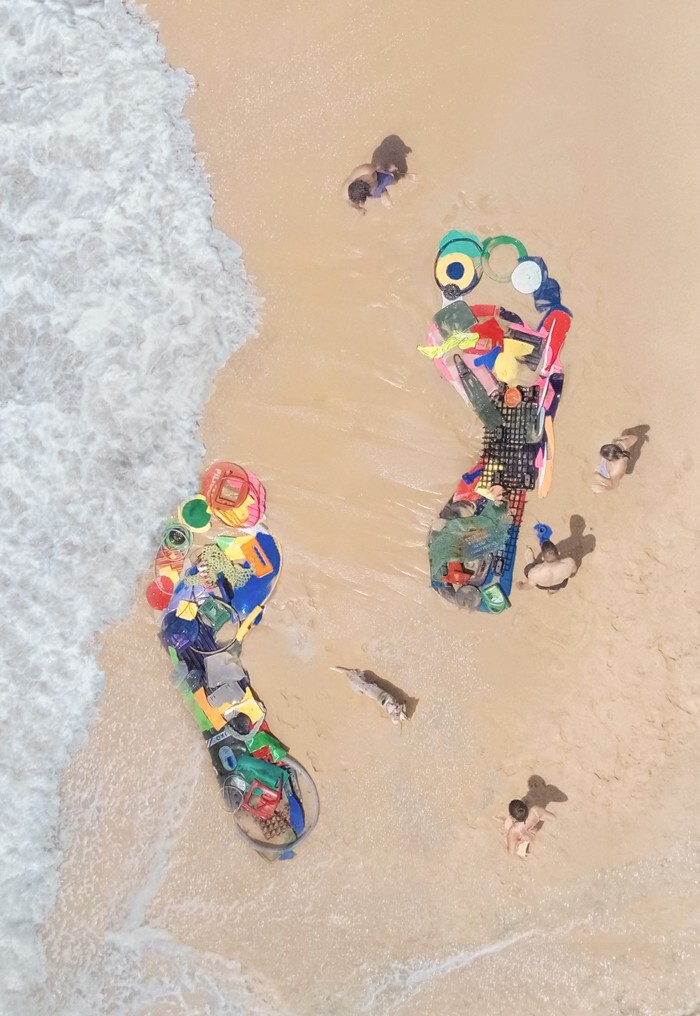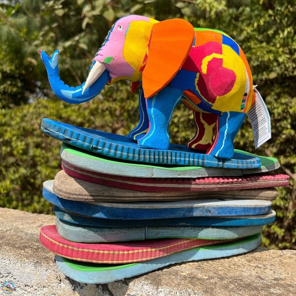 Еще одним прекрасным художественным примером может стать компания Ocean Sole, которая, как говорится, превращает загрязнения в произведения искусства из шлёпанцев. Это социальное предприятие, перерабатывающее шлёпанцы, найденные на пляжах и в водоёмах, привлекает внимание к проблеме пластиковых отходов по всему миру.