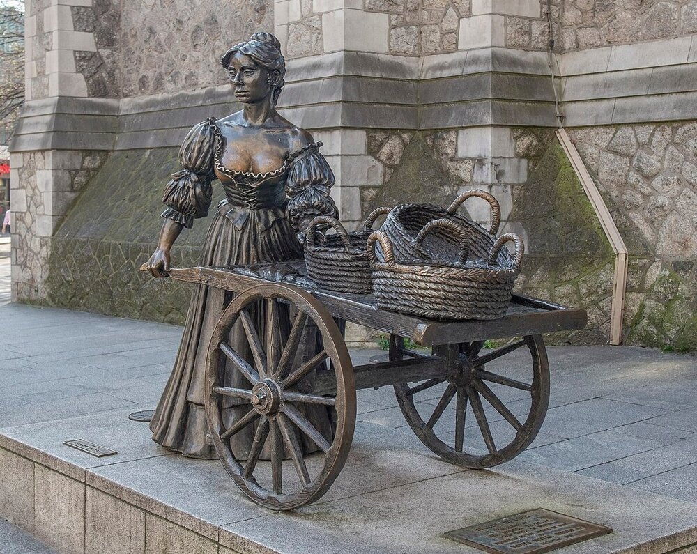 Объяснение, наверное, не такое уж и неочевидное, однако детали все равно любопытные. Молли Малоун жила в Дублине в конце XVII века. Образ скорее собирательный, хотя лет тридцать назад ирландские исследователи и заявили о том, что нашли «ту самую Молли». Каждый день Малоун катала по городу тележку с морепродуктами и зазывала покупателей. Дружелюбную красавицу многие любили. Кое-кто, вероятно, держа в уме нескромный наряд торговки, предполагает, что вечером она практиковала иную профессию.
