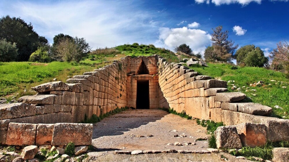 Сокровищница Атрея (или гробница Агамемнона) - это гробница ульевого типа в Греции, которой около 3300 лет. Атрей и Агамемнон - цари из древнегреческих легенд, и учёные до сих пор не определили, какой из них захоронен в этом месте. Известно, что гробница принадлежит микенской цивилизации: подобные гробницы строили и в других частях Греции.