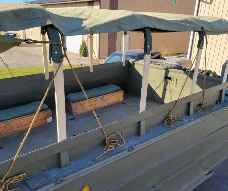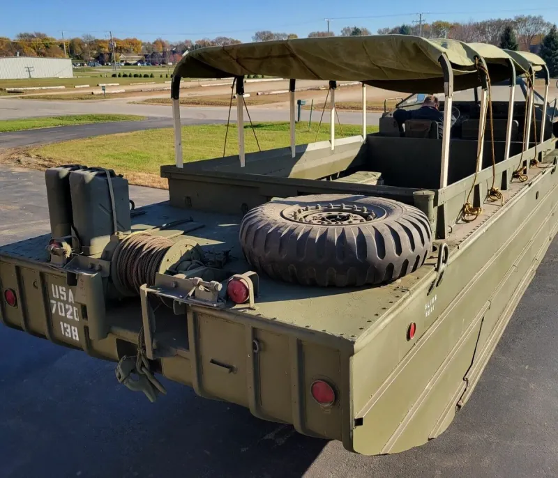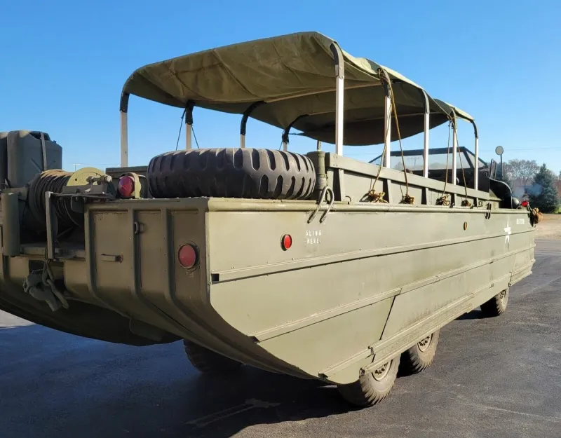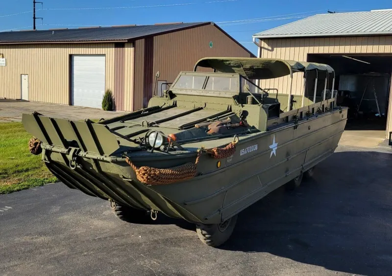 Построенный корпорацией General Motors с 1942 по 1945 год, DUKW представлял собой шестиколесный грузовик-амфибию. Военные использовали универсальный автомобиль для перевозки войск и припасов как по воде, так и по суше.