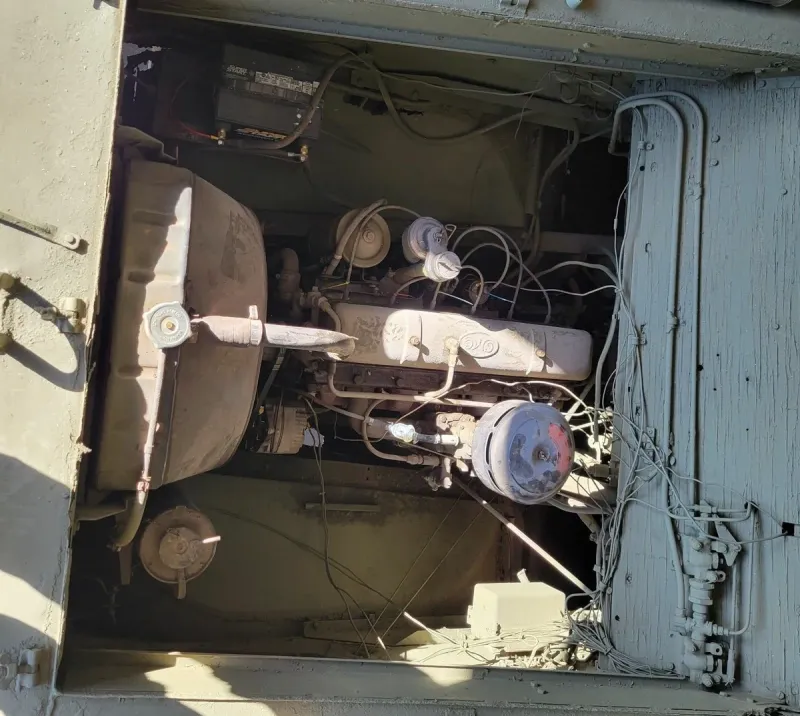 Двигатель остался спереди, это шестицилиндровый GMC 270ci мощностью 95 л.с., пятиступенчатая коробка передач с мудрёной схемой переключения и двухступенчатая раздатка. Привод вала гребного винта ременной, от коробки отбора мощности. Максимальная скорость на суше 80 км/час с запасом хода по топливу на 350 км, на воде 10 км/час при запасе хода на 80 км.