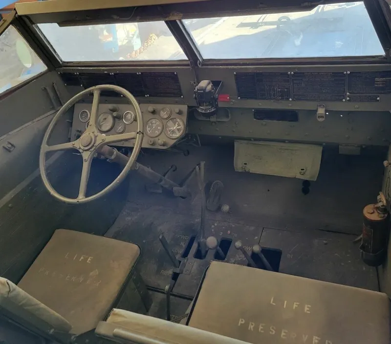 На данном экземпляре они не сохранились, впрочем, как и днище, имеющее теперь панорамный вид. Так что эта амфибия уже вряд ли куда-то поплывет, но передвигаться по суще ей ничего не мешает. Все системы исправны, можно подключить даже гребной винт, только гонять он будет воздух.