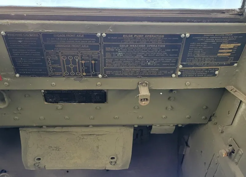За три года производства GMC DUKW (с 1942 по 1945-й) было собрано более 20 тысяч экземпляров, эта машина уже из последних, 1945 года, так что в военной истории она не имеет, но историческую ценность представляет, ведь из всего тиража не так уж много сохранилось таких «Уток». Корпус, сделанный из тонкого, дешевого стального листа быстро превращался в труху, но вины производителя в этом нет. Долговечность нигде не упоминалась даже второстепенной целью при разработке этой машины.