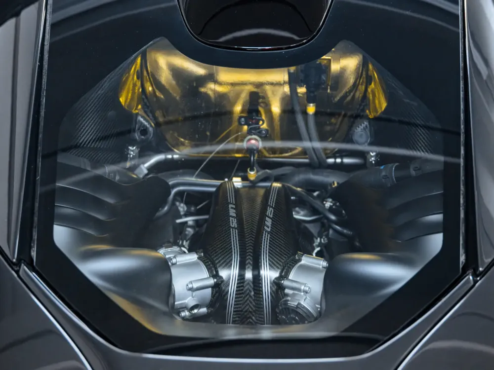 В салоне установлены альтернативные карбоновые кресла с гоночными ремнями и новый руль, повторяющие компоненты McLaren F1 GTR.