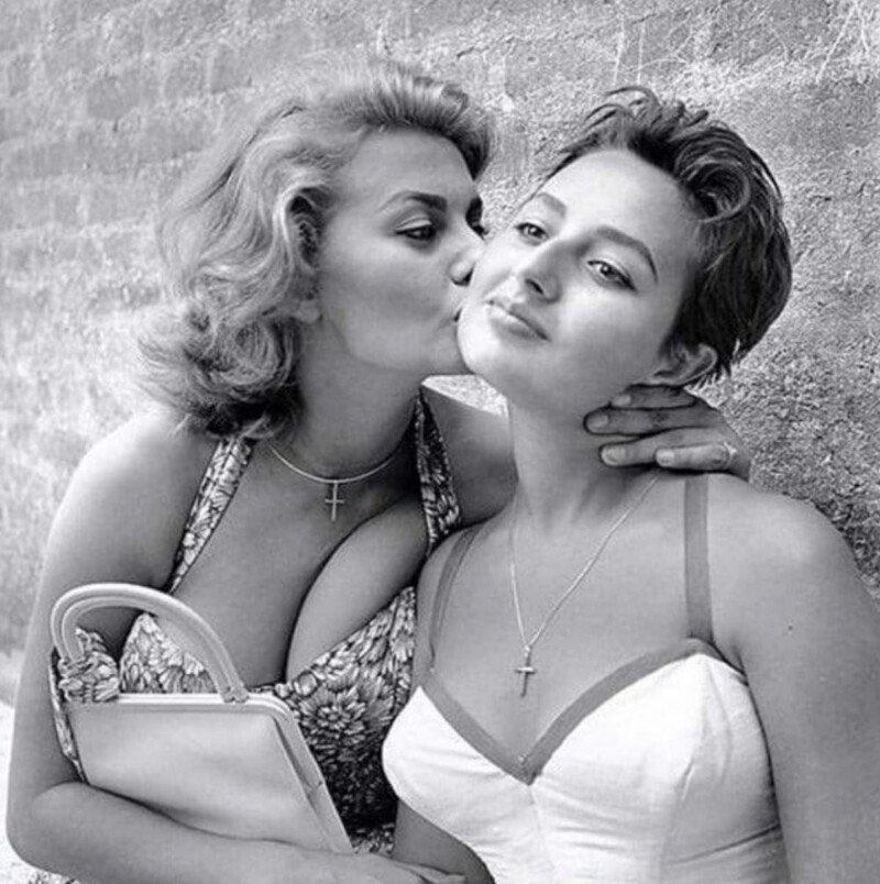 7. Coфи Лopeн с млaдшeй cecтрой Анной Марией, 1955 год