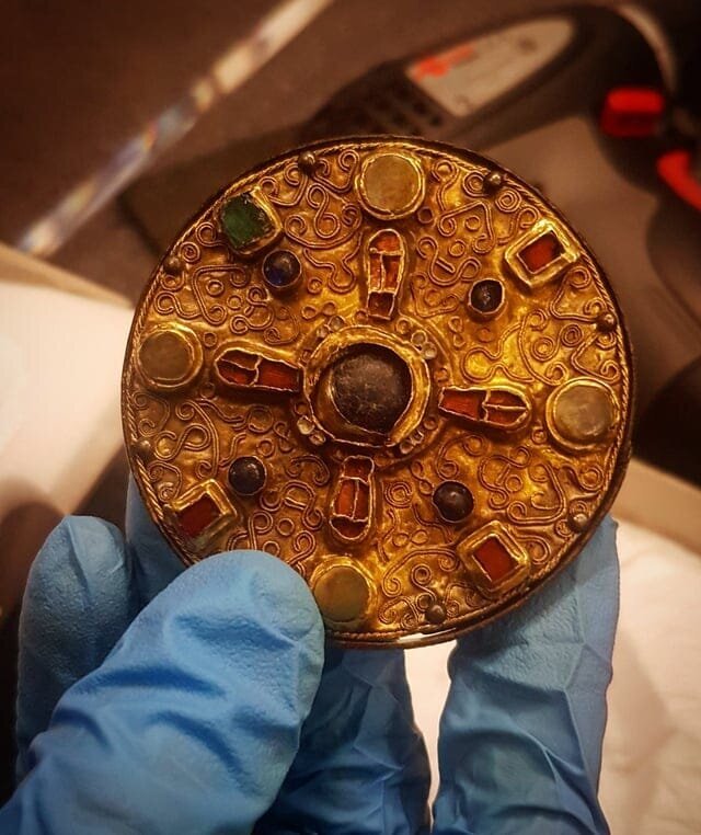 Каролингская брошь. Сделана из золота, гранатов и других драгоценных камней, 750-1000 годы