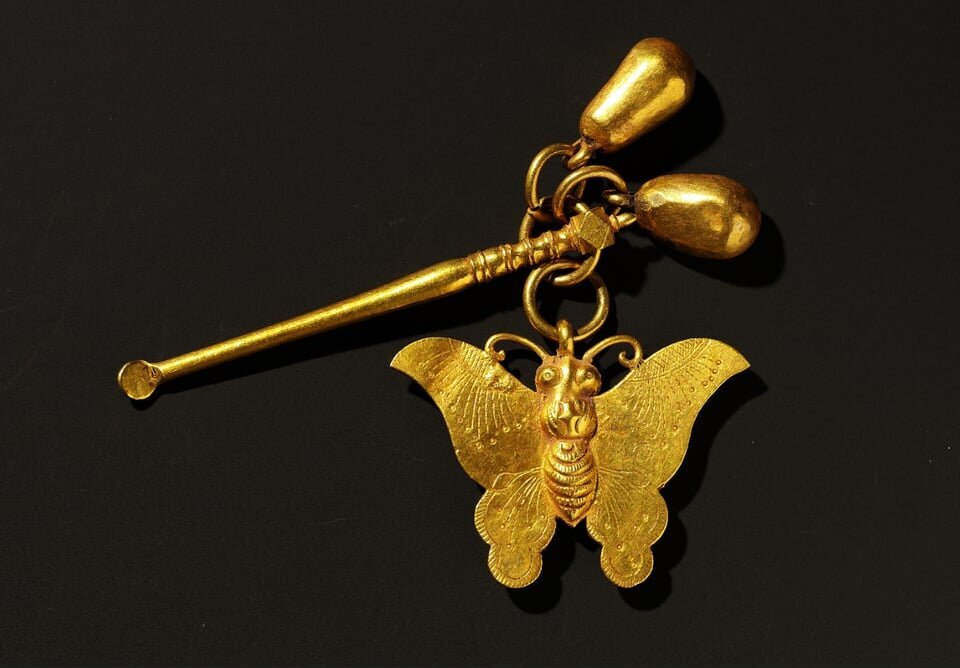 Золотая серьга с декоративной бабочкой. Корея, династия Корё, 10-14 века