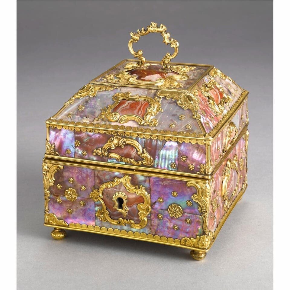 Шкатулка для духов из агата и перламутра в золотой оправе, Германия, середина 18 века