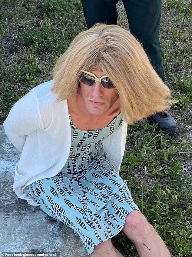 Офис шерифа опубликовал снимок задержанного в смешном парике, солнцезащитных очках и платье.