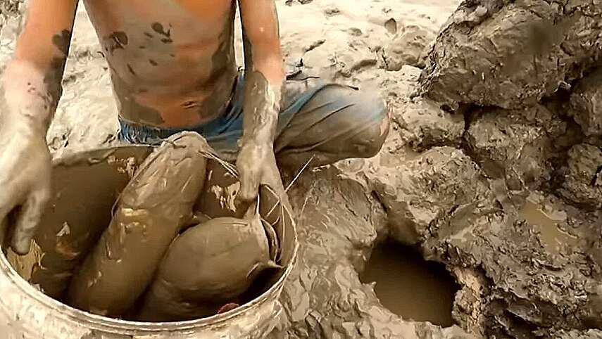 Бывает рыбный «бункер» сильно затвердевает без влаги и напоминает камень, поэтому протоптера извлекают из грунта прямо с ним.