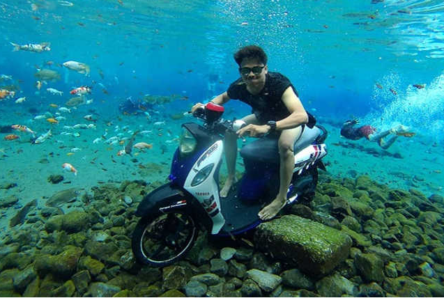 Почему на дне безупречного пруда в Индонезии стоит мотоцикл (8 фото)
