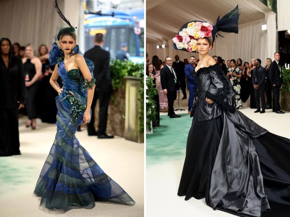 Зендея примерила сразу два образа. В разгар бала актриса сменила платье по мотивам Dior SS’99 на архивный наряд 1996 года от Givenchy, добавив к нему маккуиновскую шляпу из коллекции 2007 года.