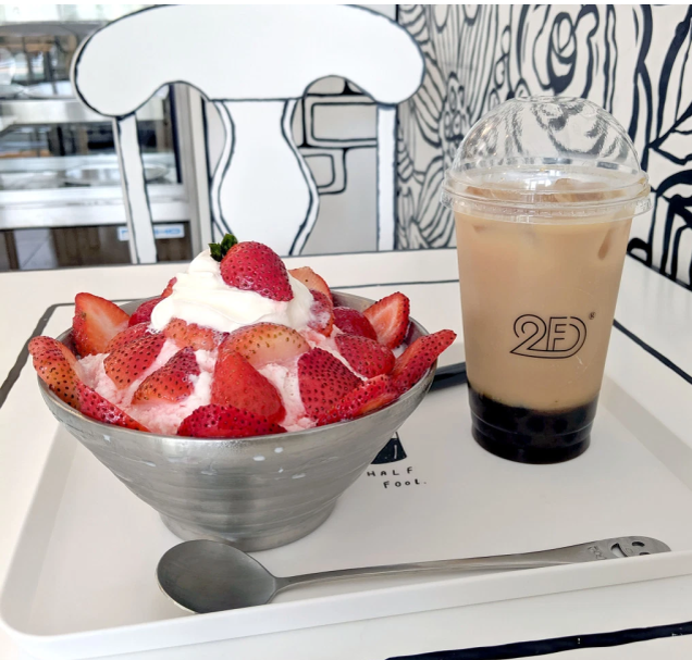 Вторым по узнаваемости все равно стало «2-D кафе» из Токио. Выглядит просто и эффектно, там скорее нарисованный французский стиль. Еда, правда, в обычных пластиковых стаканчиках и железных тарелках, не смогли купить что ли пару наборов белой посуды?