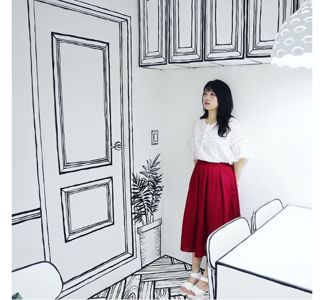 Считается, что его открыли после выхода дорамы «W – Two Worlds» 2016-го года, в котором крутой герой из вебтуна попадает в реальный мир. Все здесь -пол, мебель, посуда, ручки на дверях, стулья – словно перетянуто с картинки в реальный мир.