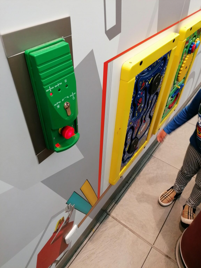 Кнопка аварийного открытия дверей в помещении размещена прямо на детской площадке