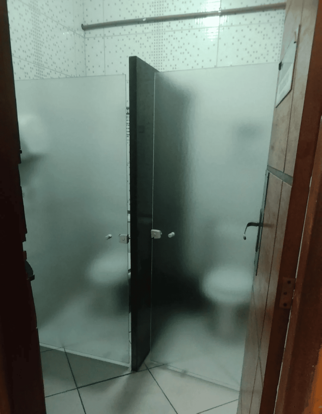 Студенты нашего курса жаловались на недостаточную конфиденциальность в уборной. Тогда, чтобы решить эту проблему, нам установили стеклянные двери