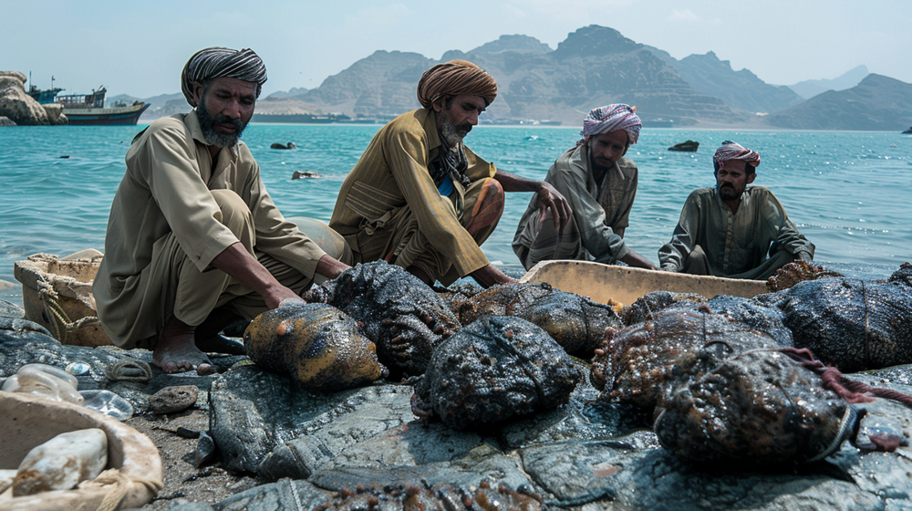 Группа йеменских рыбаков обнаружила в туше кита огромный сгусток весом около 127 килограмм. После непродолжительных споров люди решили разделить возможную прибыль между всеми участниками «большой рыбалки».