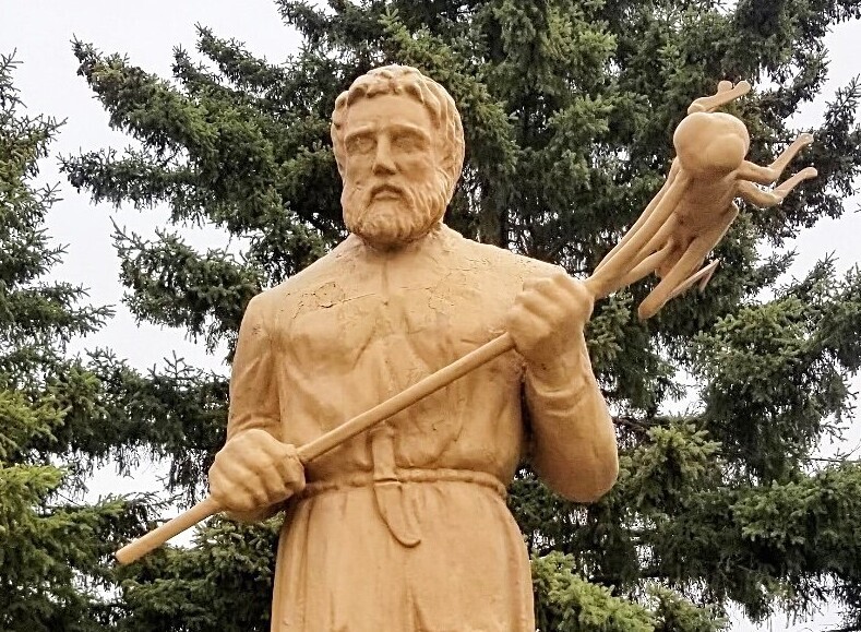 Скульптура с изображением Святого Урхо в Миннесоте (он держит огромного кузнечика)
