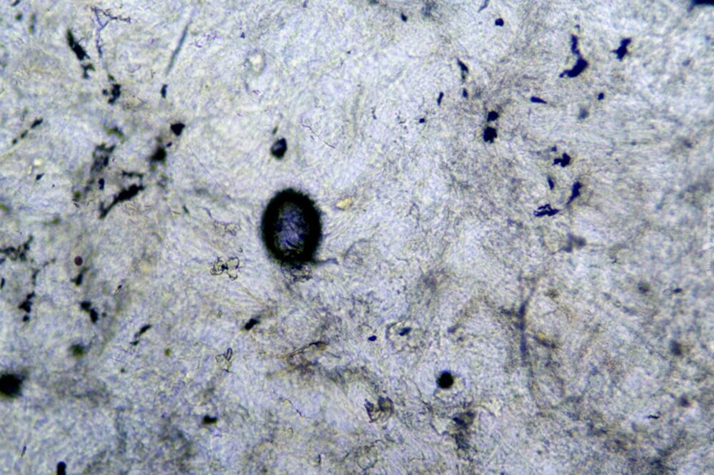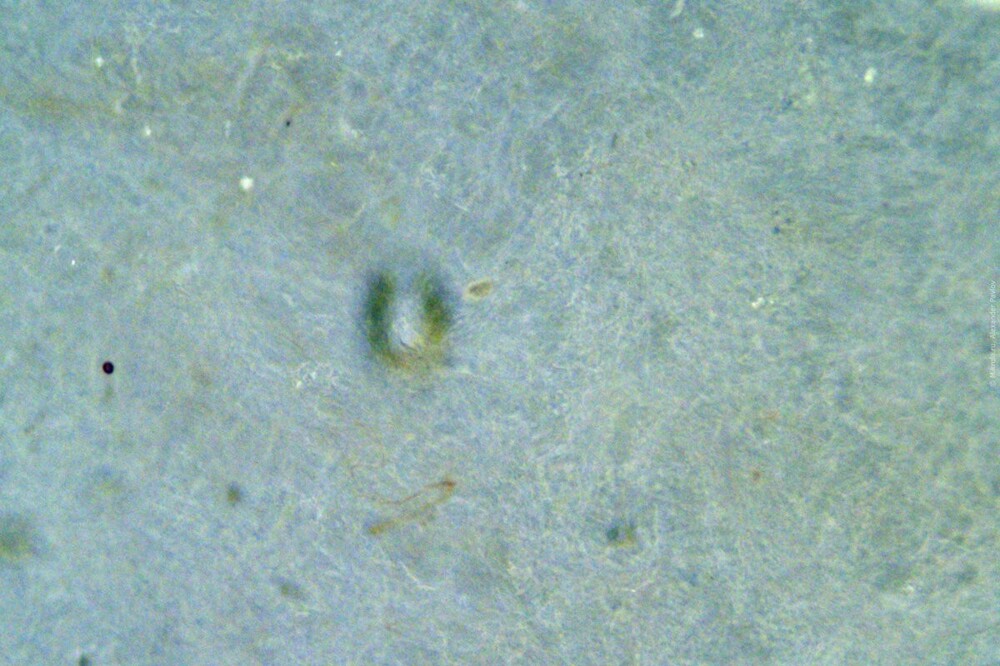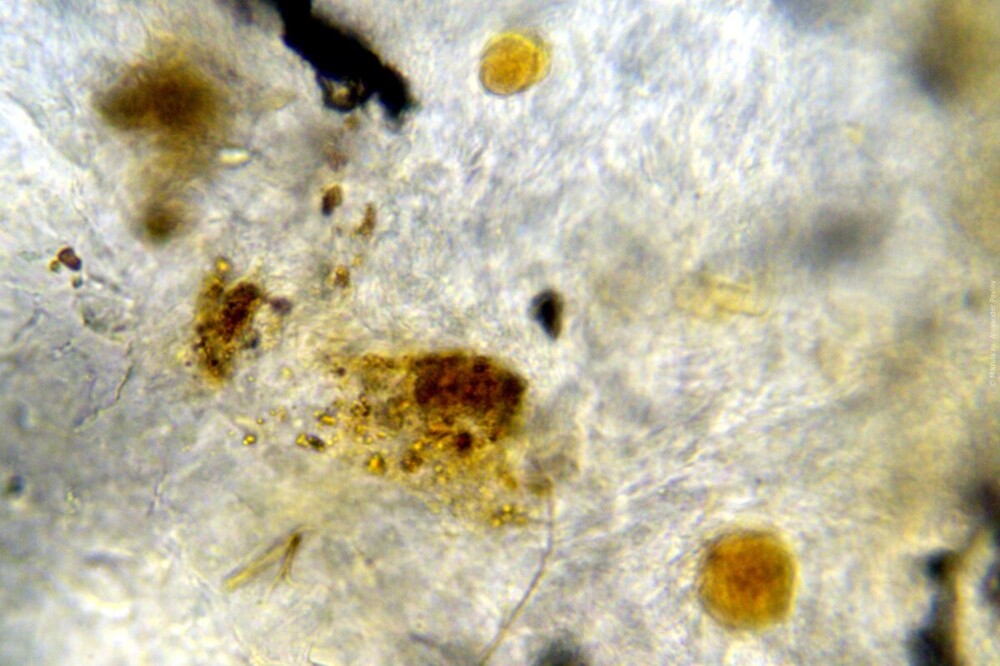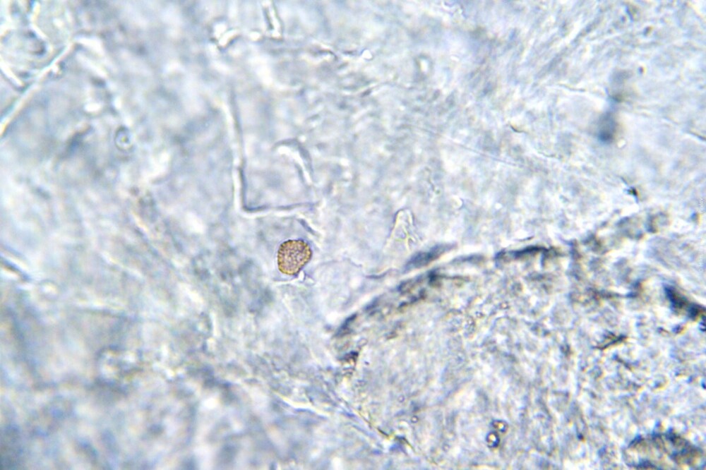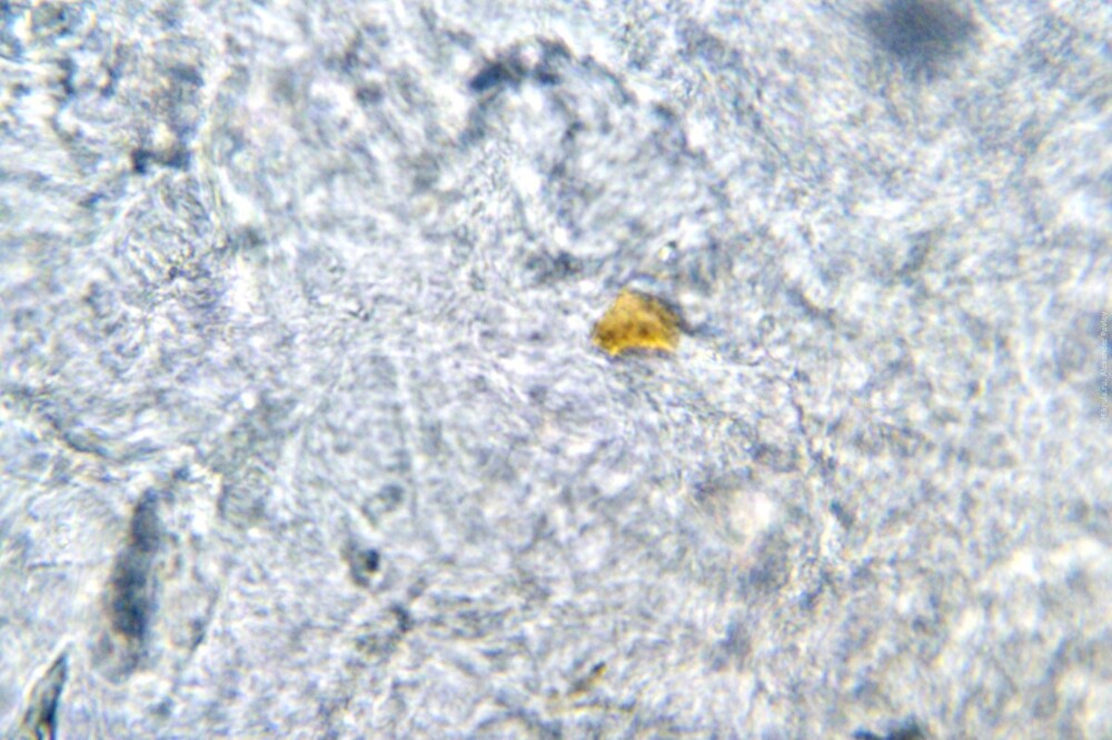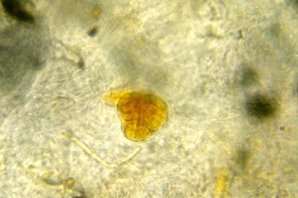 Поискав хорошенько в этой пустыне, я всё же нашел что-то, что можно принять за пыльцевое зерно. Может быть оно попало сюда из мёда?