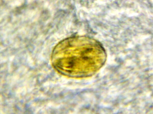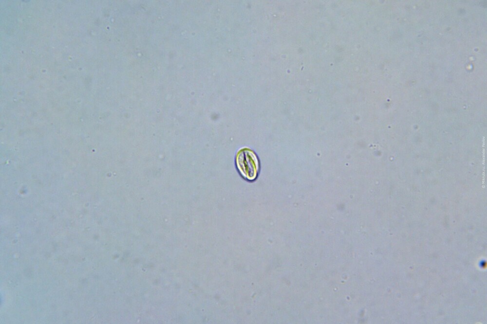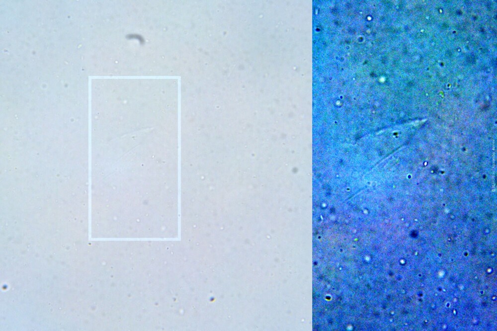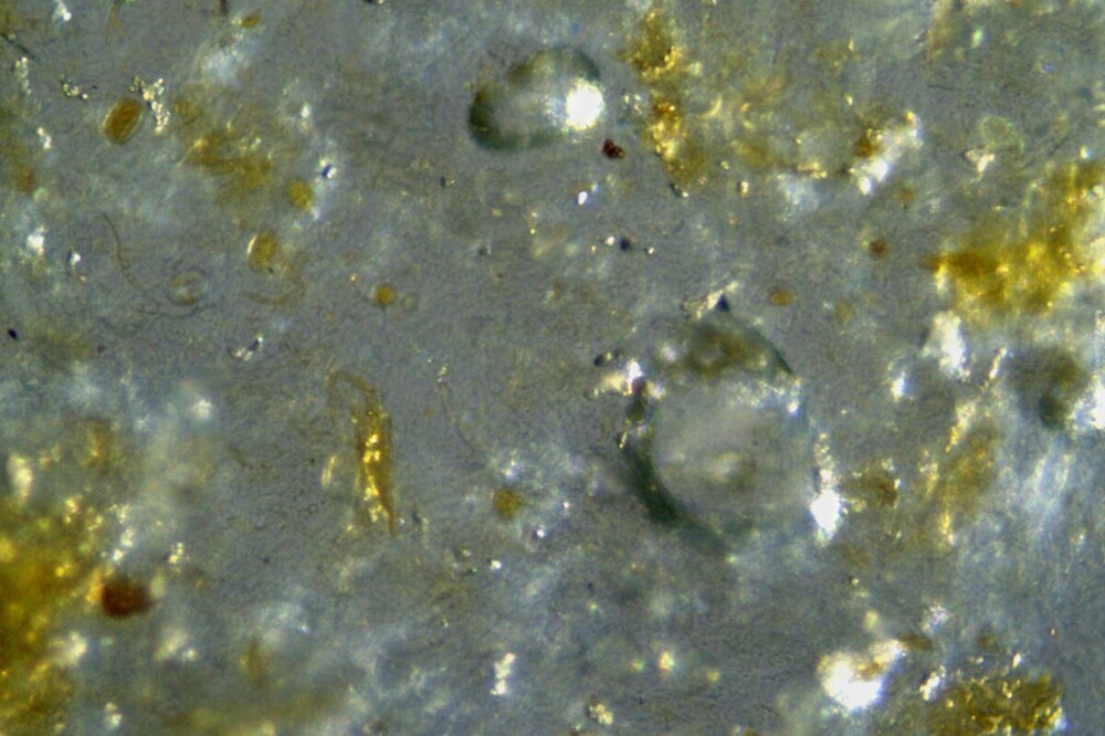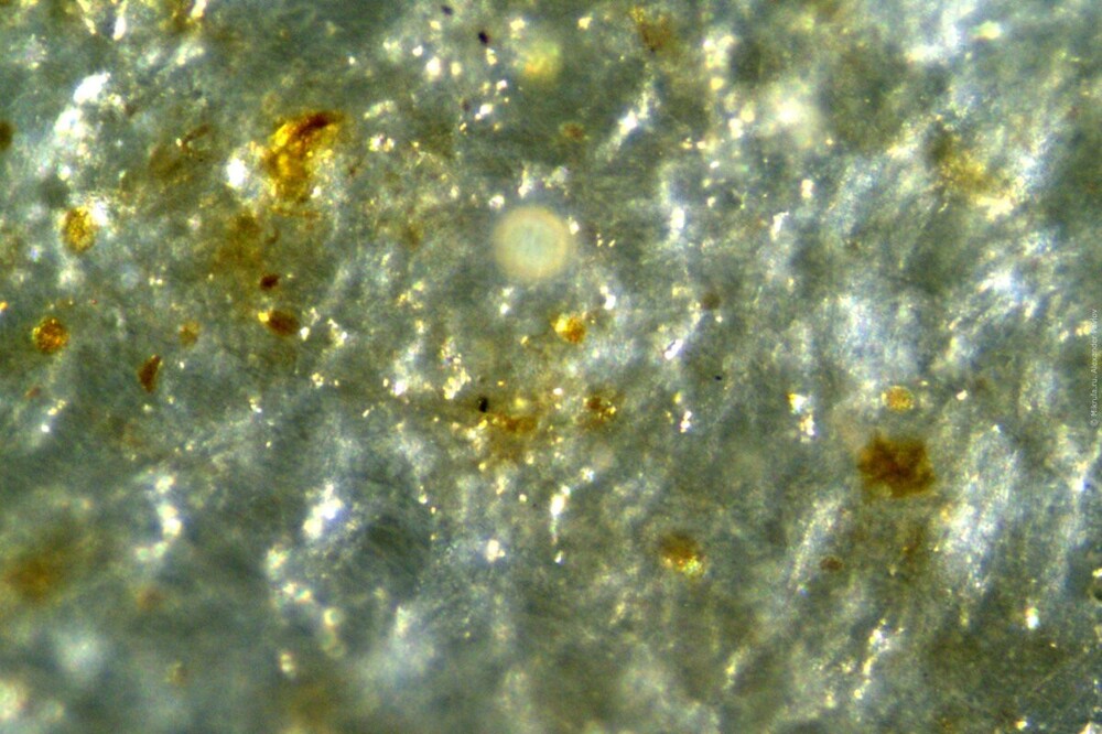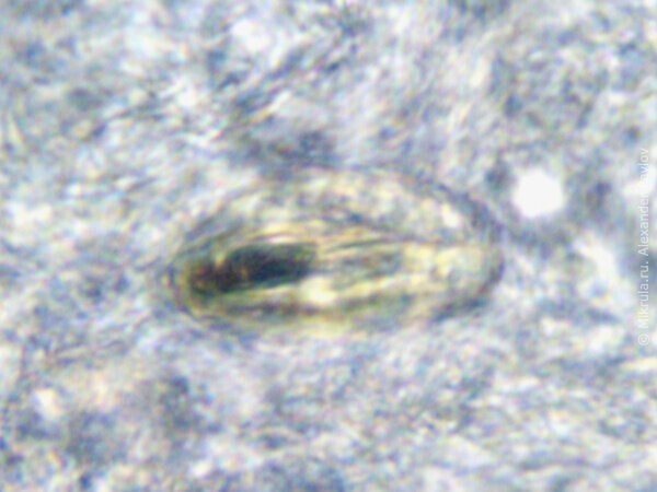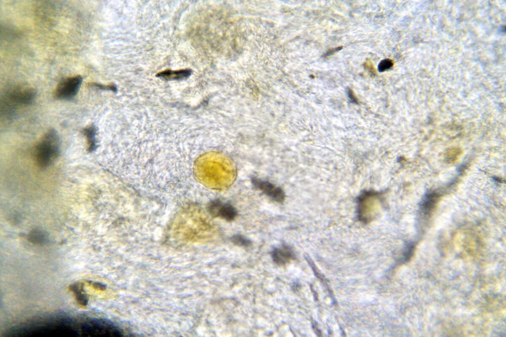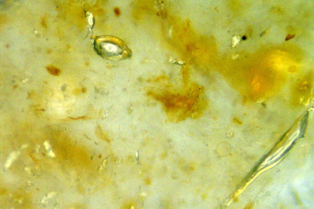 Поискав хорошенько в этой пустыне, я всё же нашел что-то, что можно принять за пыльцевое зерно. Может быть оно попало сюда из мёда?