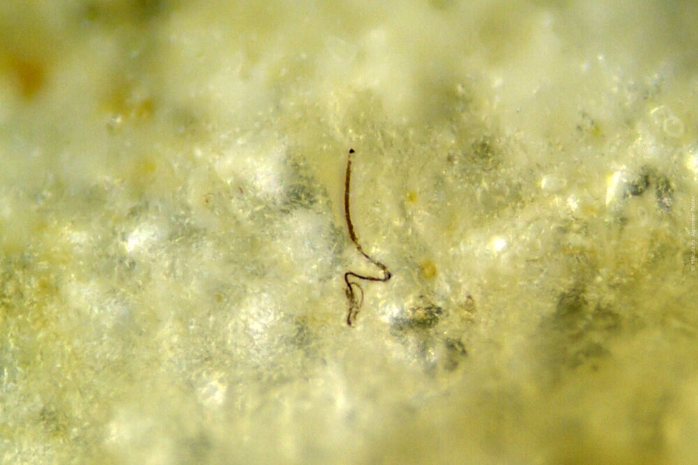 Прямо на поверхности найден усик насекомого, вмурованный в крышку соты.