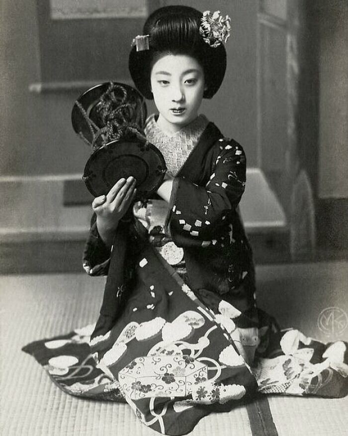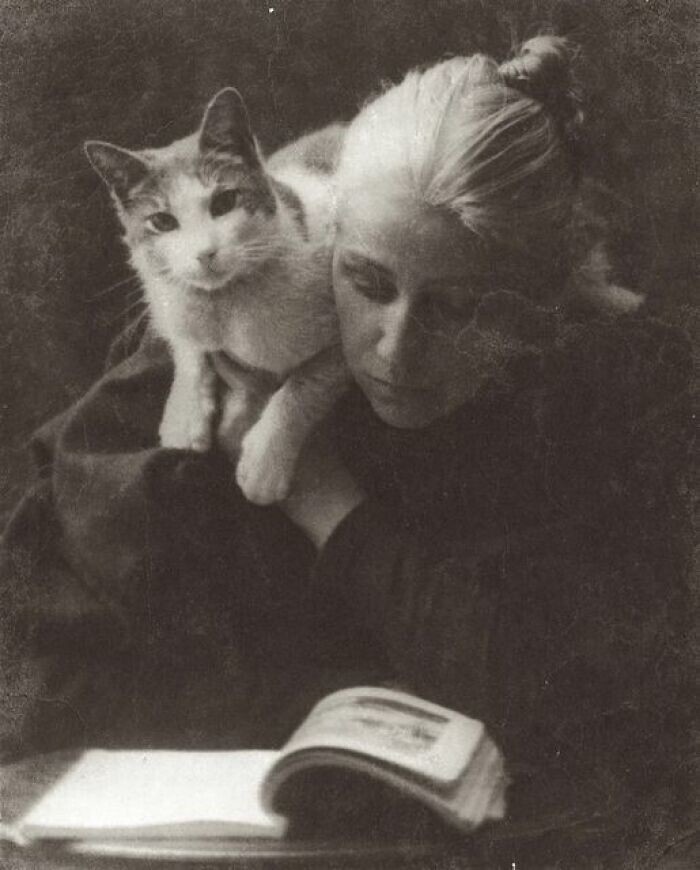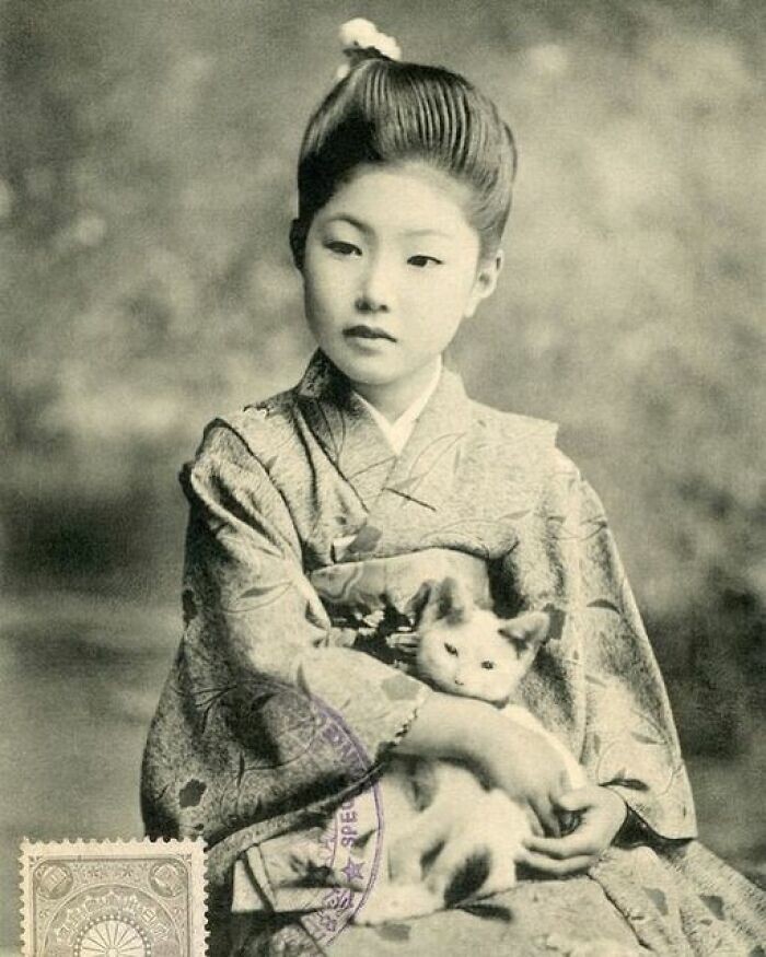 7. Японская открытка с изображением женщины с котёнком, 1907 год