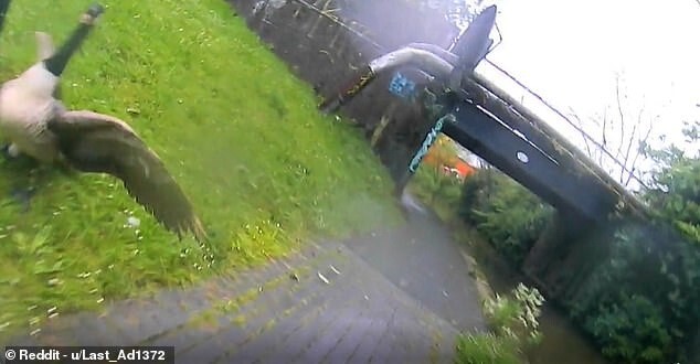 На кадрах велосипедист из Сток-он-Трента мирно едет на работу по 12-километровому маршруту рядом с каналом.