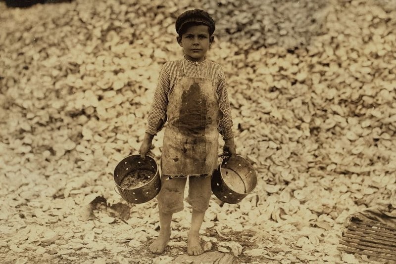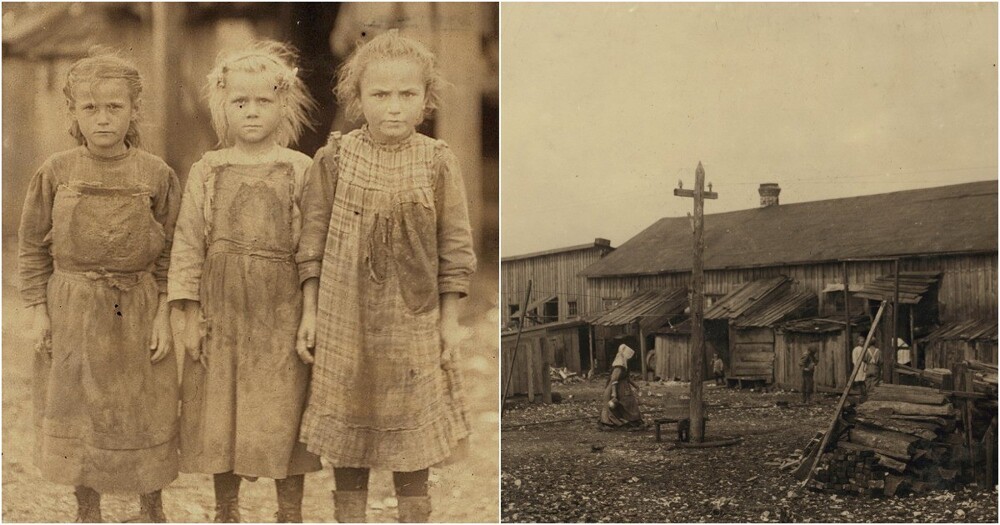 Фотографии сделал Льюис Хайн. Этот фотограф видел множество детей, изнурённых работой на фабриках и даже притворялся поставщиком оборудования или продавцом Библий, чтобы оказаться на производстве и сфотографировать то, в каких условиях работают сотрудники.