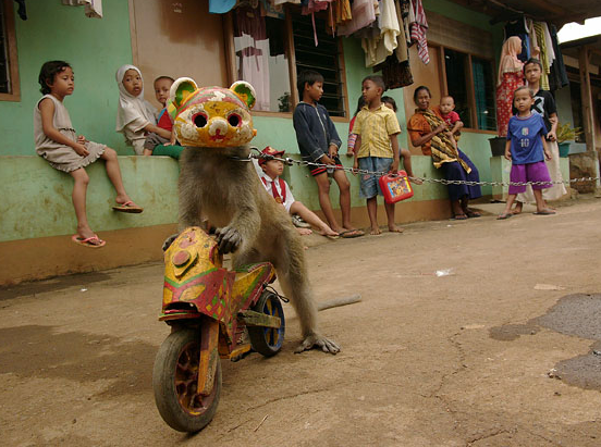 Иронично, что придумали таких жутких обезьянок, потому что буквально умирают с голоду, и у них нет никакой работы. Если бы у них была возможность достать денег, накормить семью, то нужда в обезьянках отпала бы сама собой. Но обеспечить даже несложную работу всем нуждающимся правительство Джакарты не в состоянии.