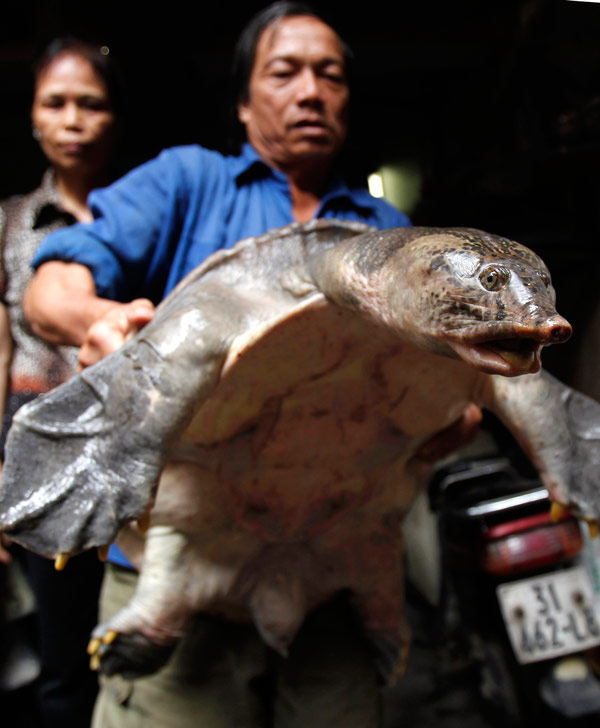 Черепашки на фото и видео — китайские триониксы. Эти рептилии прочно вошли в кулинарию азиатских народов. Их разводят и вылавливают в природе для продажи на мясо. А чтобы мясо не пропало до того, как его купят, рептилий «консервируют». Люди вводят черепах в анабиоз.