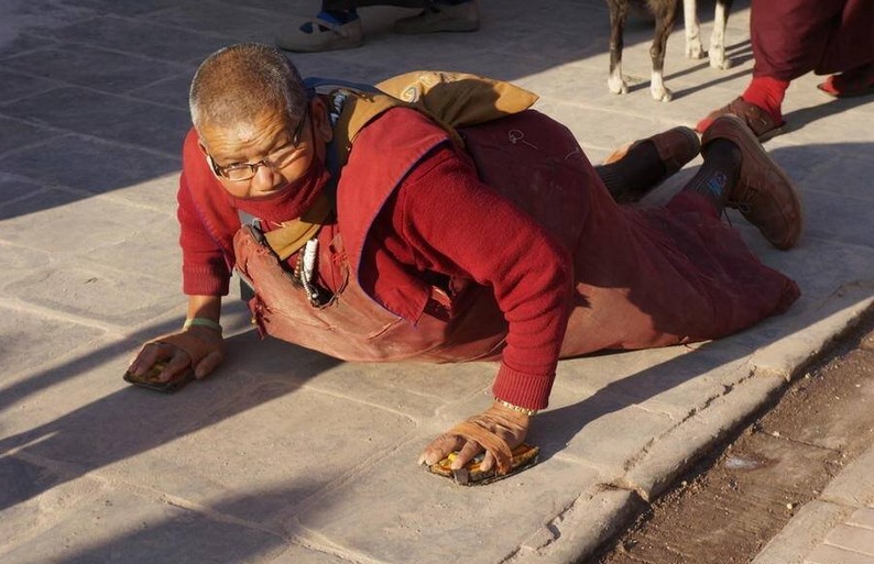 Путешествуя по Востоку, посещая страны, где исповедуют буддизм, Вы можете встретить на улицах ползающих, выгибающихся людей. О, нет, не пугайтесь и не предлагайте им помощь. С ними все нормально! Они заняты важным делом, чисткой кармы с помощью простирания.