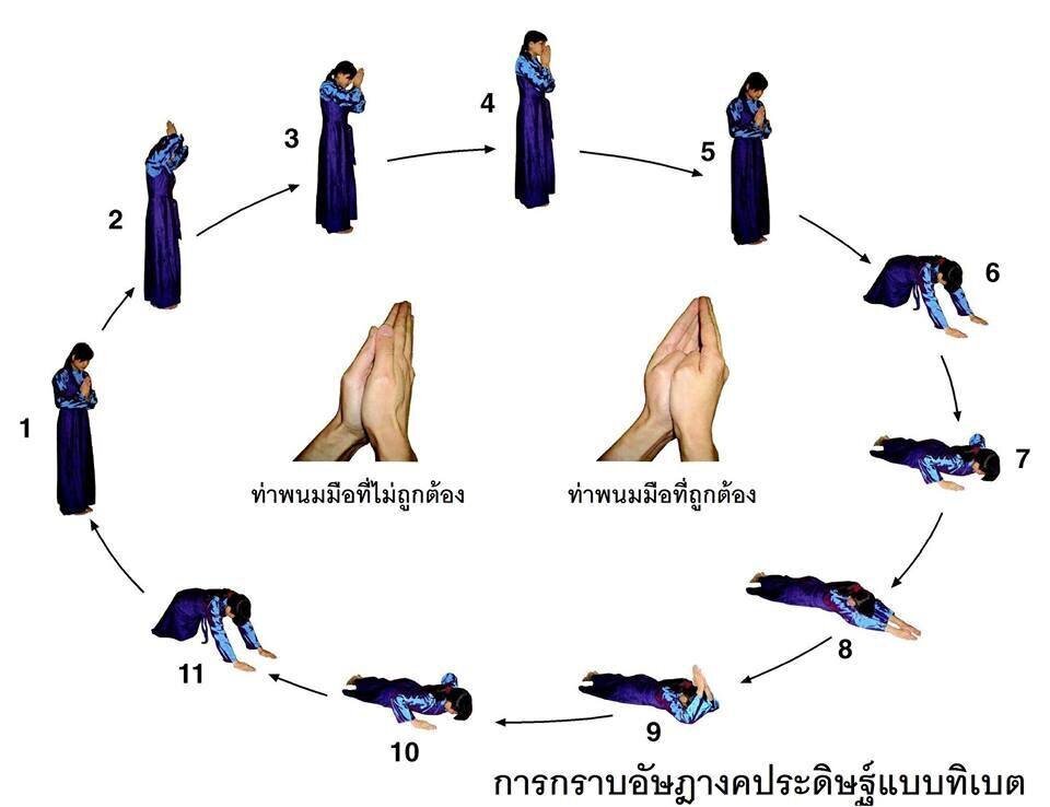 Важно помнить: 1) простирание необходимо выполнять с прямой спиной, иначе после перерождения будут физические отклонения; 2) нельзя опираться на землю кулаками, иначе после перерождения попадешь в мир зверей.