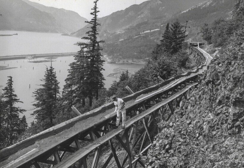 Водные аттракционы для бревен: как в США сплавляли деревья на лесопилки (8 фото)