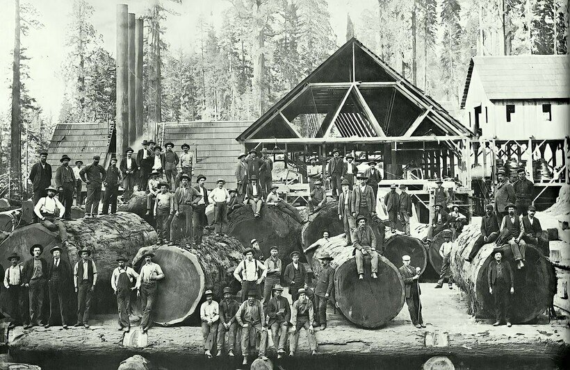 Именно тогда началась катастрофическая вырубка многовековых деревьев. Ее вели по-варварски: секвойи были настолько большими и тяжелыми, что при падении часто разлетались на щепки. При этом крупные стволы, оставшиеся невредимыми при падении, приходилось взрывать. В итоге до лесопилки доходила примерно пятая часть из всего вырубленного леса.