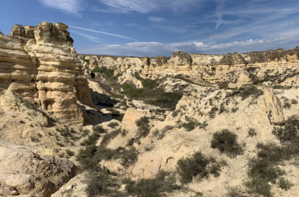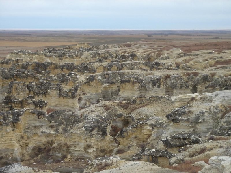 Этот особый слой горной породы известен как мел Ниобрара. Он сформирован микроскопическими организмами, населявшими мелководный морской путь. В геологическом образовании также находят окаменелости из моря. Это гигантские моллюски, летающие рептилии и мозазавры.