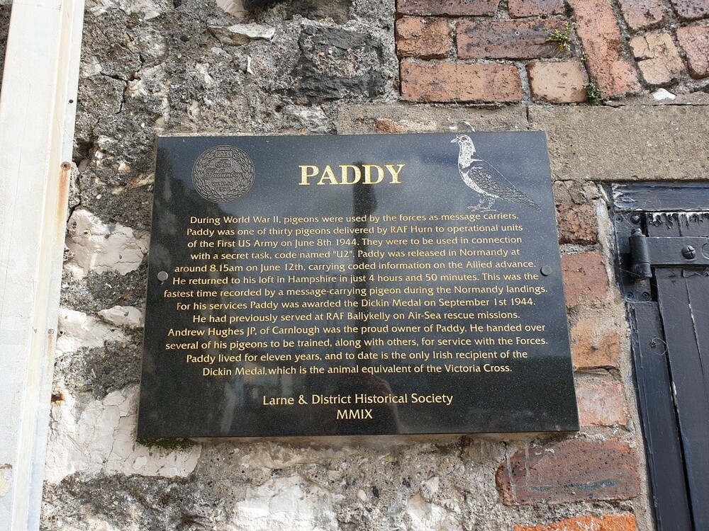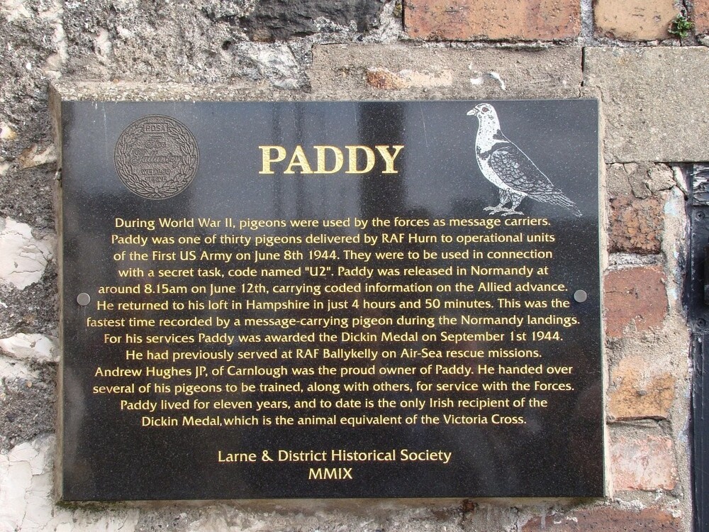 Голубь Пэдди был выращен как почтовый Эндрю Хьюзом из деревни Карнлау в графстве Антрим. Во время Второй мировой войны тысячи обученных почтовых голубей были привлечены Королевскими военно-воздушными силами, чтобы помогать военнослужащим, доставляя секретные закодированные сообщения между союзниками.