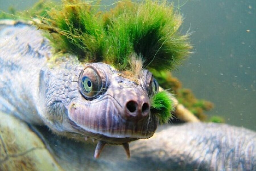Оказалось, что иногда водоросли растут прямо на самих животных, особенно на тех, кто мало гуляет на солнце и прохлаждается в тени. Ведь если черепаха много времени проводит на солнце, то водоросли погибают и перестают расти. Уникальность австралийских черепах в том, что зелень у них растет не только на спине, что бывает нередко, а еще на макушке. И смотрится это просто отпадно! Будто какой-то стилист поработал над образом «Тортил».