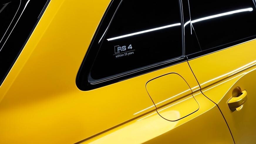 Мощнейший универсал из семейства RS 4 лишится рейлингов на крыше, получив взамен расширенный чёрный декор кузова. Для внешней окраски предложен особый жёлтый оттенок Imola, а салон отделают чёрными кожей и алькантарой с жёлтой строчкой, как у RS 4 Sport 2001 года. Даже традиционно красные логотипы Audi Sport в этом случае будут жёлтыми. Помимо цвета Imola, для кузова также доступны чёрный и тёмно-серый. Наконец, покупателям RS 4 Avant edition 25 years предложат наручный хронометр в аналогичном стиле и с тем же названием. Как и новинку, часы выпустят тиражом лишь 250 экземпляров.